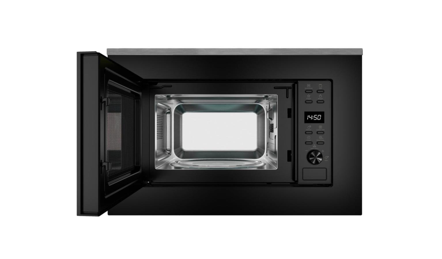 The Electrolux EMSB-20XG is a 20L built-in microwave oven with 800W microwave and 1000W grill power. It features touch control with a knob, grill function, and a timer. The built-in design and glass material add to its sleek appearance.