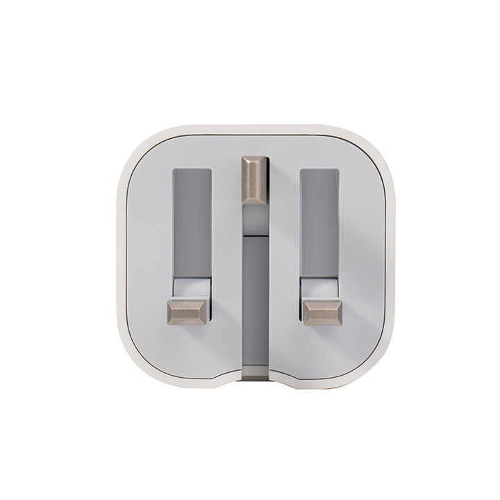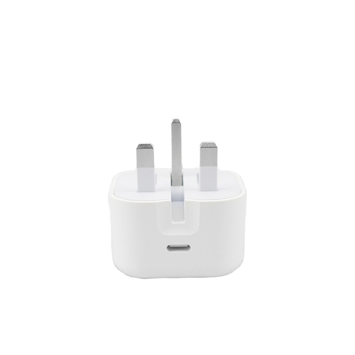 A UK-style plug with a built-in 20W USB-C port, ideal for fast charging smartphones and other USB-C devices.